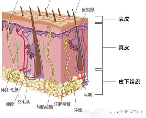 先从我们的皮肤结构嗦起:容易有黑头的皮肤呢,皮脂腺每天会分泌较多油脂,就比如日常别人不出油,你一脸油腻还泛光那样