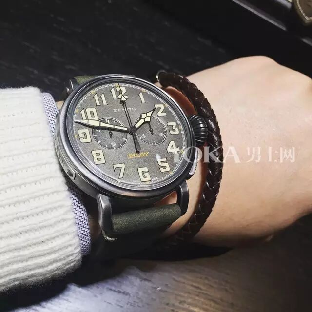 今年真力时主打绅士复古风,这款咖啡骑士腕表就是代表作,灰绿色的表带和复古的表盘,十分撩人。45 毫米直径复古精钢表壳,搭载 El Primero 星速 4069 自动计时码表机芯,纯钛金属表壳后盖镌刻“Café Racer Spirit” (咖啡骑士精神) 字样。这款表与去年推出的青铜款腕表一样,一定会成为今年最热门的腕表之一。