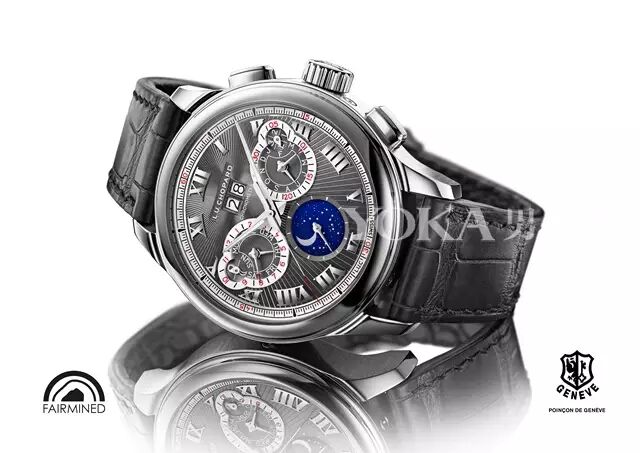 L.U.C Perpetual Chrono腕表搭载配备卓越万年历机制的03.10-L手动上链计时机芯,而且它所使用的金都是获得“公平采矿”认证的白金,量发行20枚。