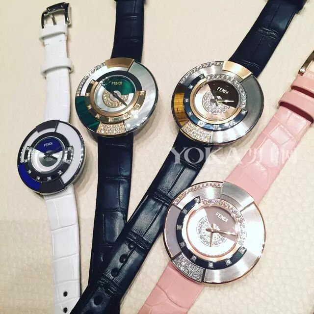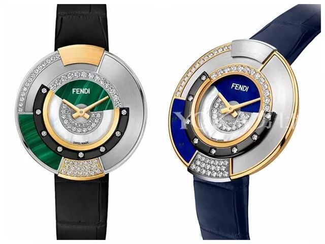FENDI全新系列Policromia名字来源于希腊单词poly(丰富)个Khroma(色彩),体现了融合多个色彩的理念,这款腕表在不同表面上融合了多种色彩、采用了多个阴影件、贵重的相见和珍贵原料制成的不对称表换,有一种独特的3D效果。