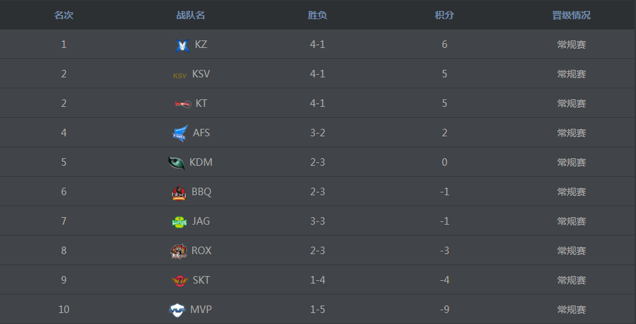 目前LCK的积分榜上,SKT位居第九倒数第二,排名仅仅高于MVP。