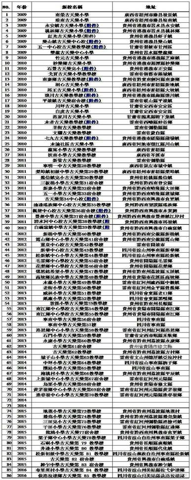 这是他捐建的学校名单,截止到2016年12月,已经有94所了。