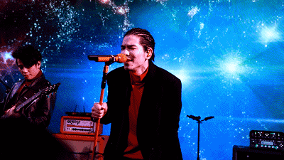 而后就到了大家万众期待的表演环节,狮子合唱团的乐手们登上舞台、开始调试音箱,现场的观众都很好奇,主唱萧敬腾今天是否也会登场呢?海豹君本来心想着今天是个大晴天,难道“雨神”没来吗?结果就看见Wuli老萧霸气侧漏地登上舞台,开始了今晚的表演,让观众们惊喜不已!