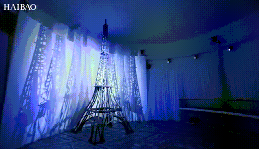 展览的第二部分则是一条长长的“高空长廊”,现场地板通过投影巴黎和上海城市鸟瞰图的形式,让观看者走在透明的玻璃上,仿佛置身高空,俯视两座城市的美景。