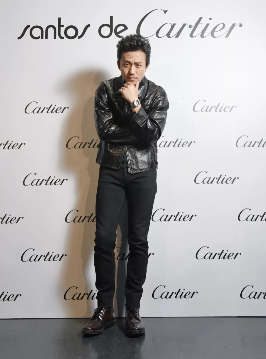 侯明昊:我自己平时会根据穿衣风格的不同,选择搭配不同的手表,今天穿着的是一件皮衣,所以我选择搭配的是2018新款的卡地亚santos腕表,这款(腕表)外表很简单,同时也是钢制的,有一种很硬朗的感觉。然后表盘也是方的,表带可以自己去拆卸,所以很方便。