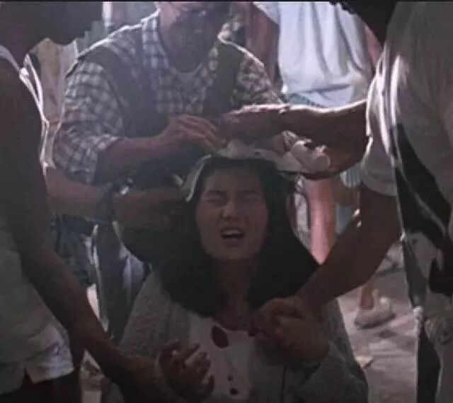 但正式拍摄时,还是发生了意外,由于推倒铁架的力量稍大,导致铁架过快倒下,张曼玉来不及躲闪,铁架直接砸在了她的头上。