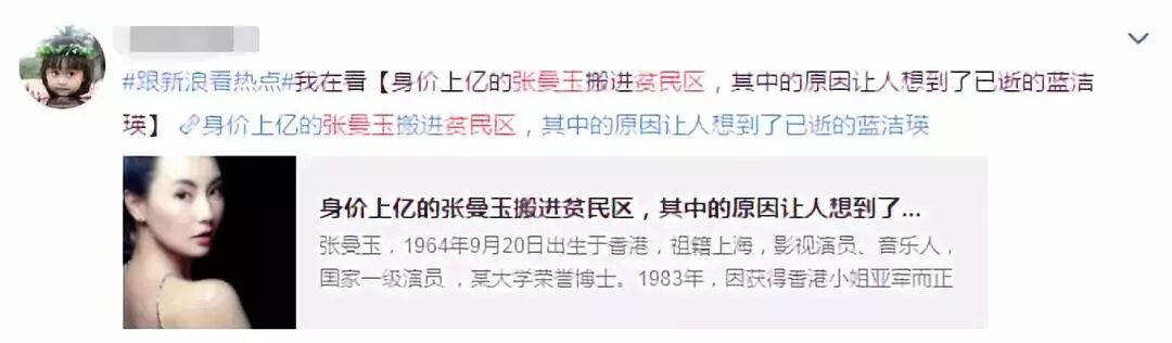 张曼玉因为搬进香港“贫民区”的事情上了热搜。