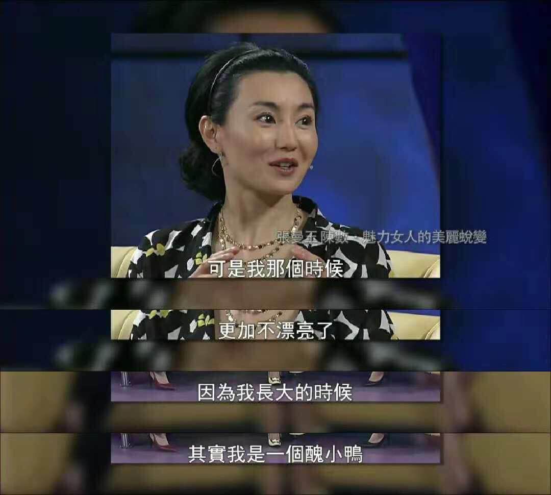 其实张曼玉从来都没觉得自己美,有一次鲁豫采访她,她说:“一直觉得自己是丑小鸭。”