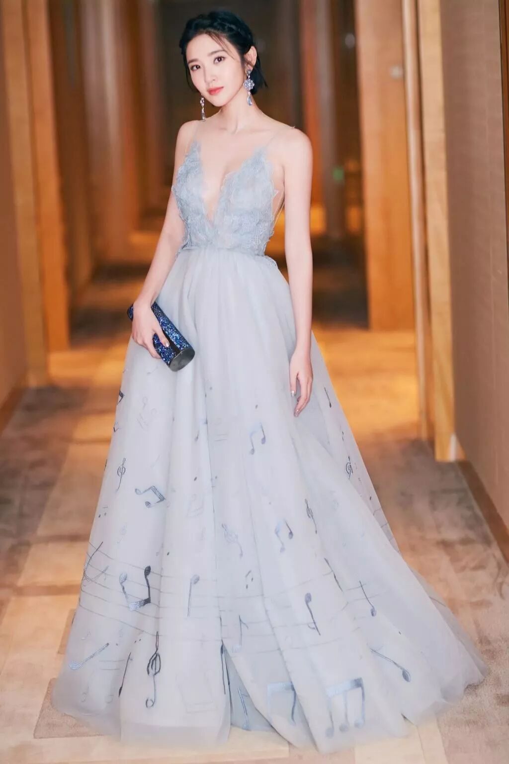这样一个小姐姐穿上礼服裙真的就是仙女了。这条礼服裙上身是吊带设计,也是v型露出漂亮的胸和锁骨。腰部的设计让她的腰看上去特别细。