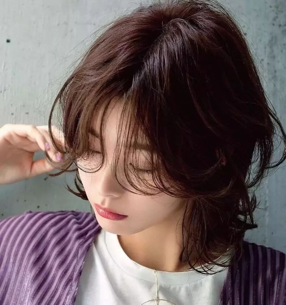 低彩度高明度的冷色系加上日系发型的轻柔感,会显得整体发型更加立体,线条感更强。