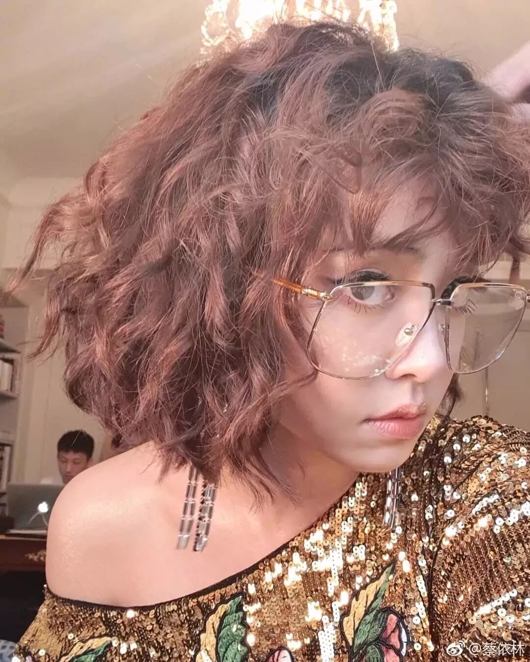 之前蔡依林去法国时装周参加GUCCI大秀时候也染了一头咖啡玫瑰发色,加上绵羊卷毛非常复古了!!