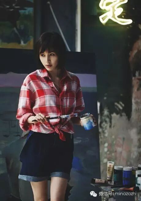 红色的格纹衬衫下摆打了结轻松拉长了身材的比例,这样的上衣搭配牛仔短裤充满艺术气质!