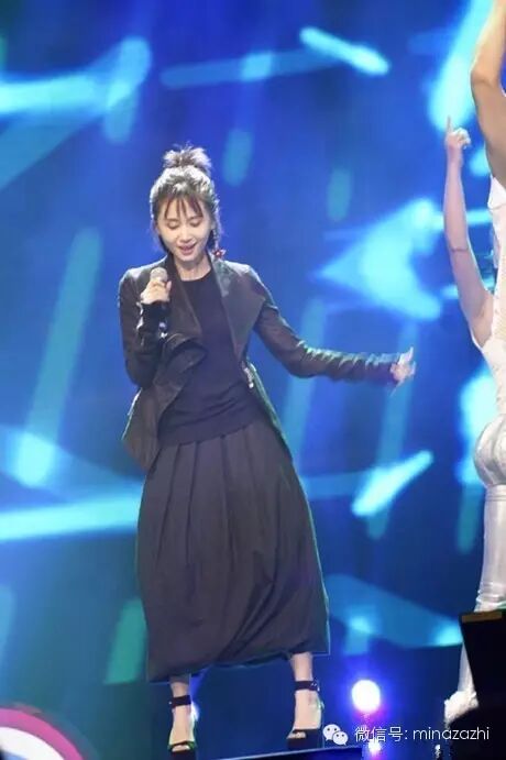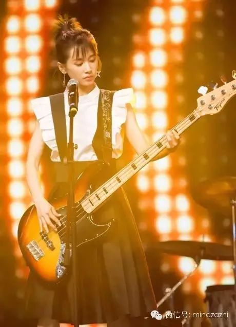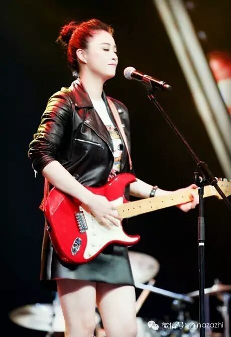 机车夹克+皮裙+红色的吉他 蒋欣的这身look摇滚范爆棚,看着就不自觉地想跟着她跳起来!
