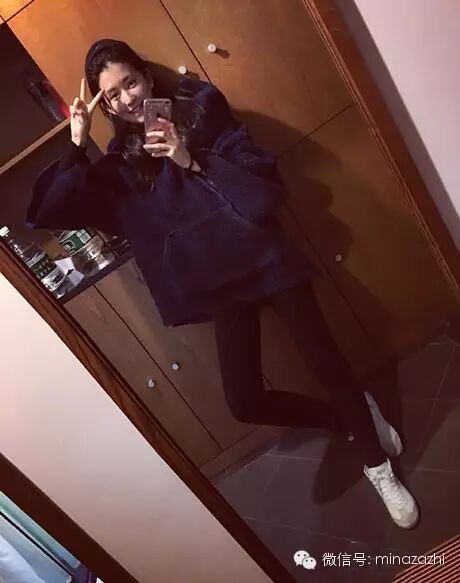 Oversize的上衣搭配黑色的瘦腿裤让乔欣显得更加纤细修长!