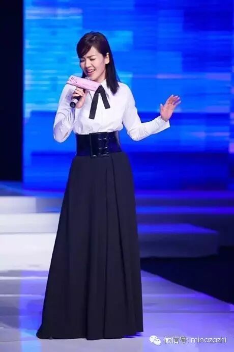 白衬衫+小领结充满了学院风情,搭配上高腰的长裙尽显女神范!