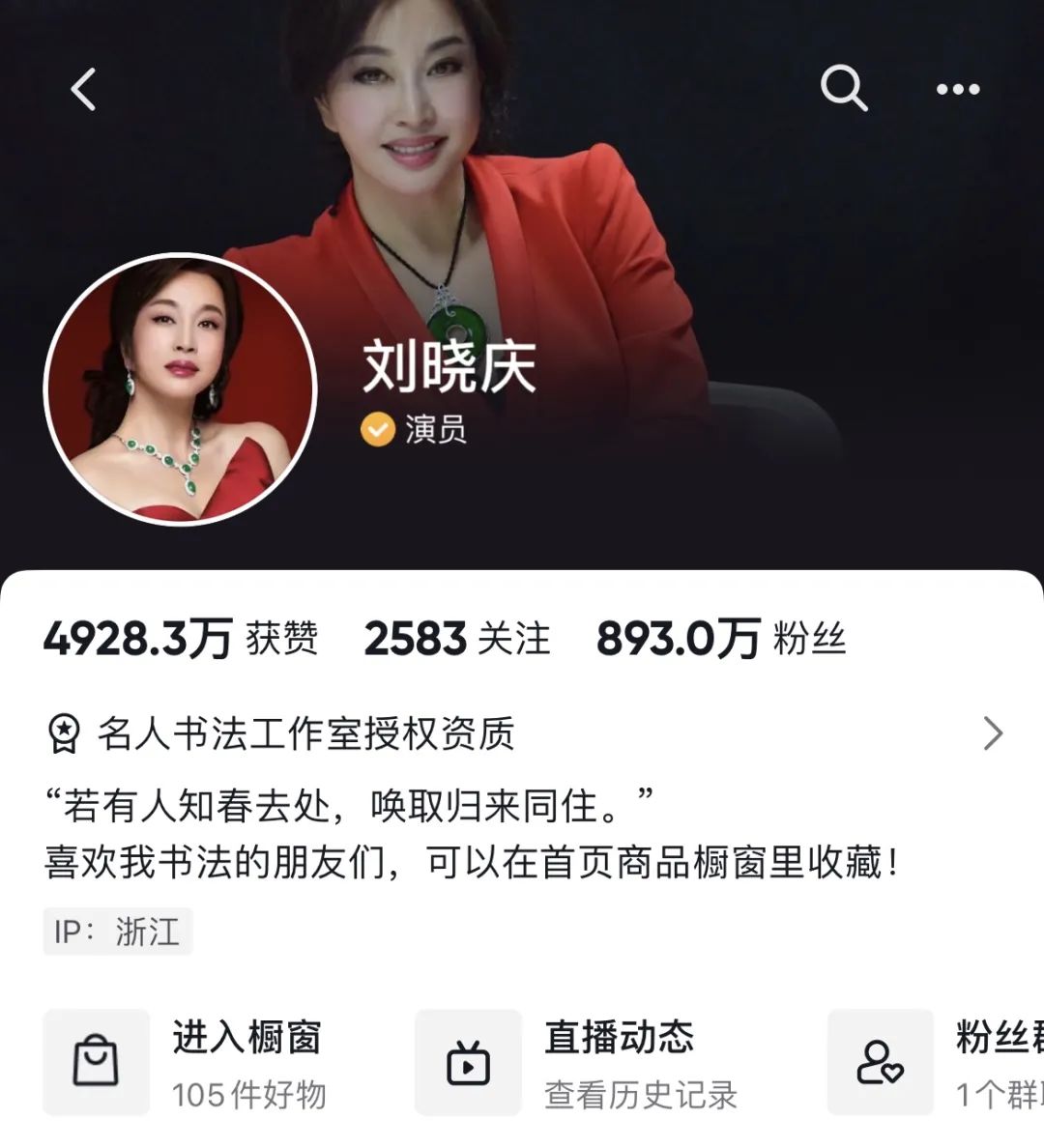 她还活跃在短视频和直播领域,在直播间里写书法、卖作品、盘珠子、卖手串儿……忙得不亦乐乎,且状态昂扬。