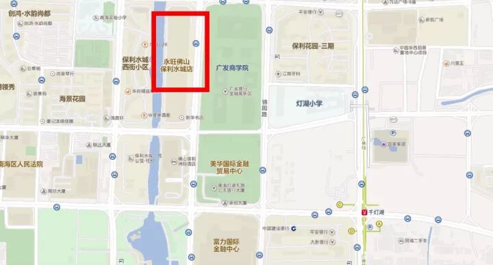 可搭乘广佛线到千灯湖站,再搭公交南海快08线路(千灯湖地铁站上,保利水城站下)