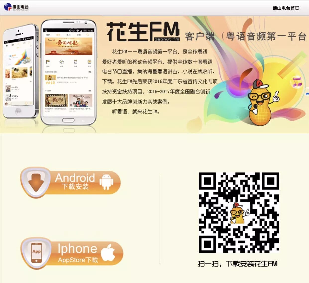 佛山电台官方微信、粤语音频第一平台——花生FM app对开幕式进行直播。