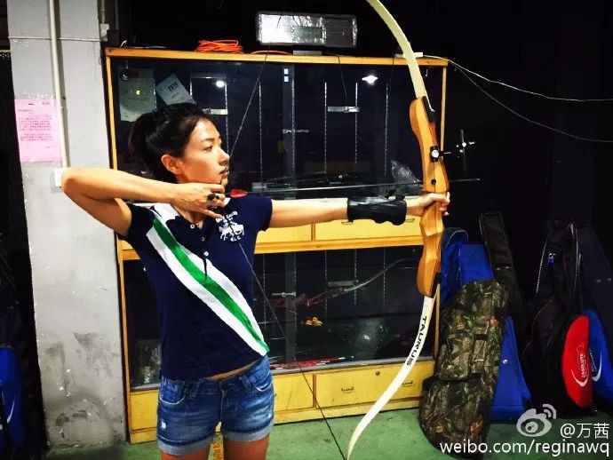 她玩射箭,从一开始脱靶的菜鸟,到后来有模有样,颇为娴熟。
