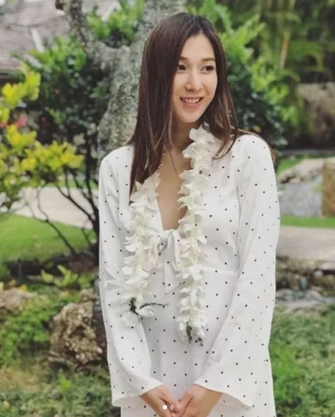 钟嘉欣穿着低胸波点裙子,肚子明显隆起,但她依然是keep着瓜子脸、四肢纤瘦;网友看了之后都称赞她是最美孕妇,希望她能好好享受这趟babymoon旅行。