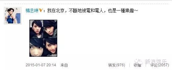 1月7日,杨丞琳在微博中放上去北京照片,写下:“我在北京,不断地被电和电人,也是一种乐趣!”