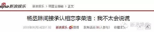 5月再次被和李荣浩的绯闻,杨丞琳坦言自己现在很幸福,她对记者说:“你们认识我那么久,有没有你们应该感觉得到,你们知道我不太会说谎。”