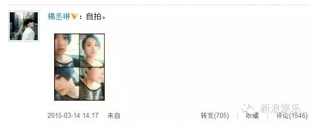 3月14日杨丞琳又在微博晒出自拍照,写了“自拍”两字!