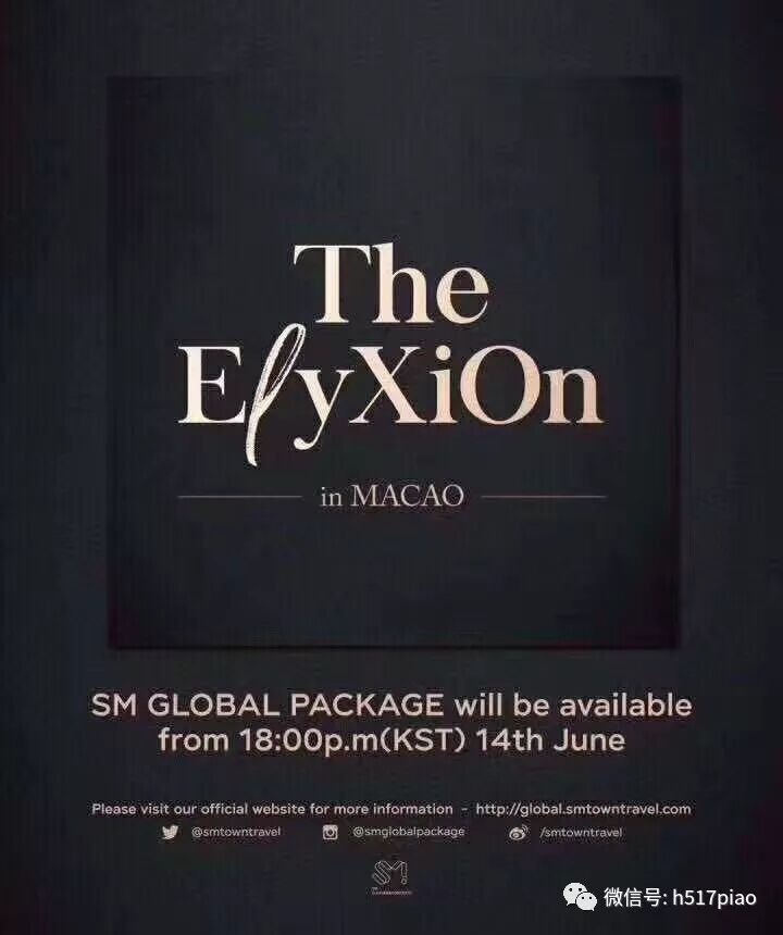 5 、EXO PLANET 4 – The EℓyXiOn – in MACAO的最新动态将通过喜鹊团票务网微博( http://weibo.com/517piao)及喜鹊团票务网澳门站微信h517piao发布,敬请关注!