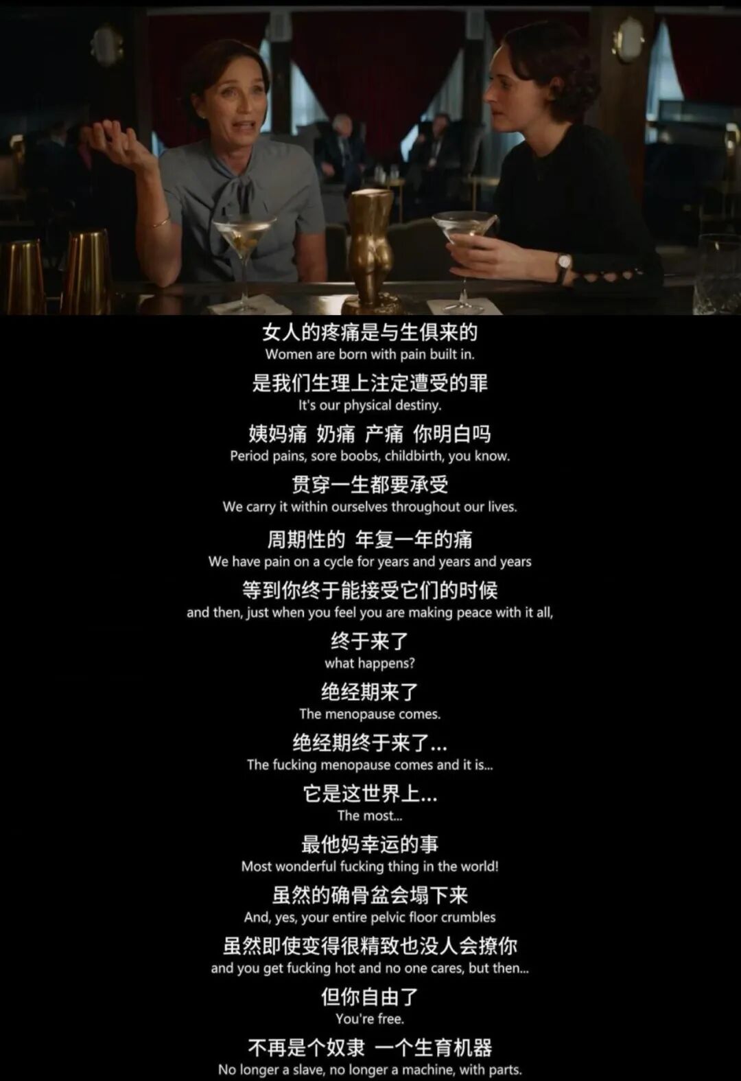 “女性的痛是与生俱来的......痛经、乳房胀痛、生产痛贯穿一生,等你终于能接受它们的时候,绝经终于来了。