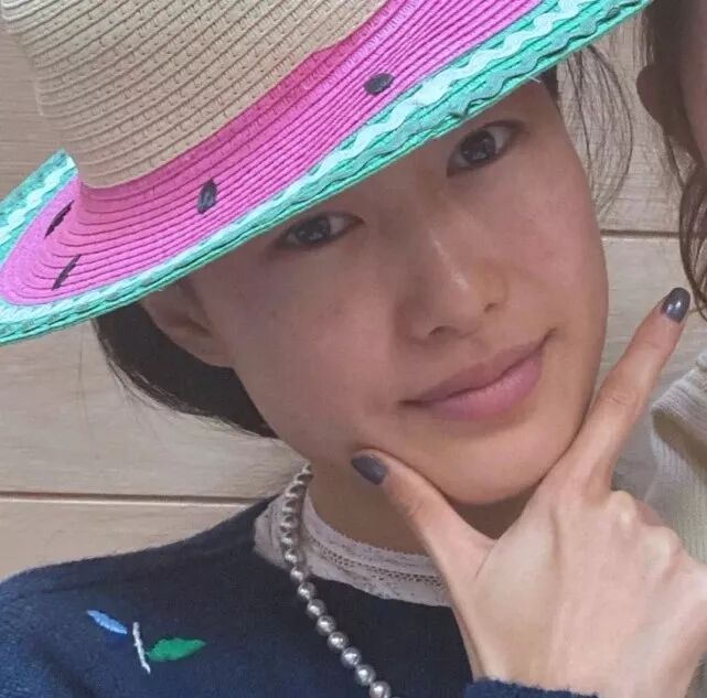 戴了帽子这张感觉好点,能够看出她没有化妆。