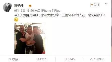 昨天被外界传承“得罪了整个娱乐圈”的甄子丹,突然发了条微博,还是他与李连杰,吴京的三人合影。