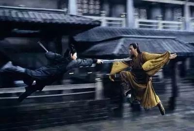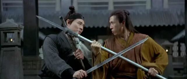 李连杰用的真剑,刚好刺在甄子丹的眉毛之上。