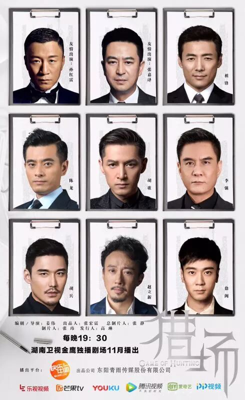 《猎场》由东阳青雨传媒股份有限公司 出品,该剧集结了演艺界众多实力大咖,主演胡歌 、陈龙 、孙红雷、张嘉译、祖锋、李强、胡兵、菅纫姿、万茜、章龄之、柯蓝、罗海琼、贾静雯等知名实力派演员来出演。只是看这极具份量的演员阵容,隔着屏幕就能感受到众戏骨同台飙戏的紧张刺激!