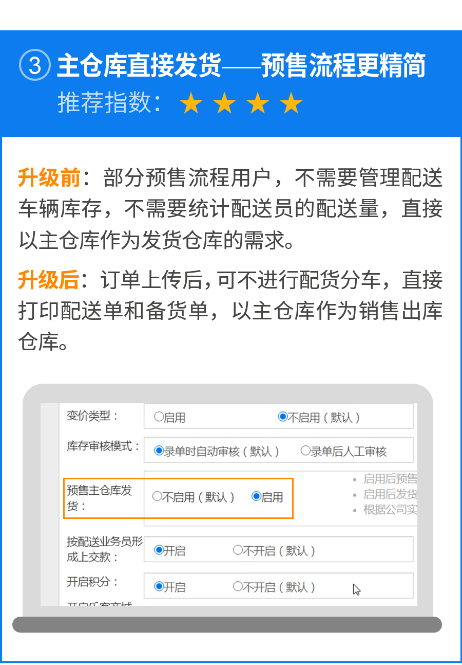 由于新功能具有一定的个性化,在管理维度上更进了一步,而且2万多家客户的使用场景各不一样,为了让已经习惯于旧功能的客户体验更好,本次升级为预约升级,只需要您一个电话或一个消息,我们就会把全新功能的系统为您升级完成。