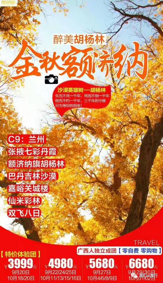 C9:兰州、仙米彩林、张掖七彩丹霞、额济纳旗胡杨林、巴丹吉林沙漠、