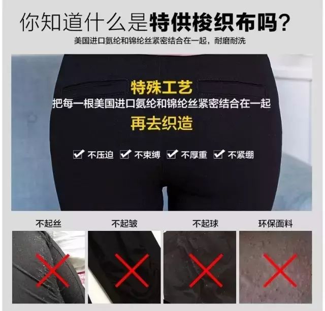 Let’s diet魔术裤采用进口的氨纶丝和锦纶丝,用特殊工艺,做成了特供梭织布!