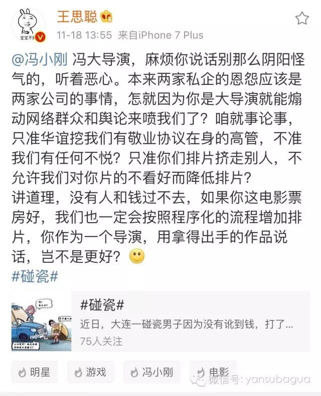 冯小刚再接茬,让王思聪尊重市场规律,还夸了王思聪耿直。
