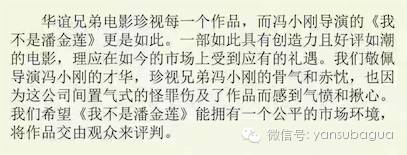 然后华谊再跟进撕,说希望给《我不是潘金莲》公平环境,
