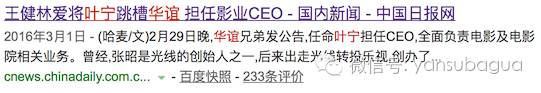 这封公开信有个背景是,今年上半年,万达高管叶宁跳槽到华谊,