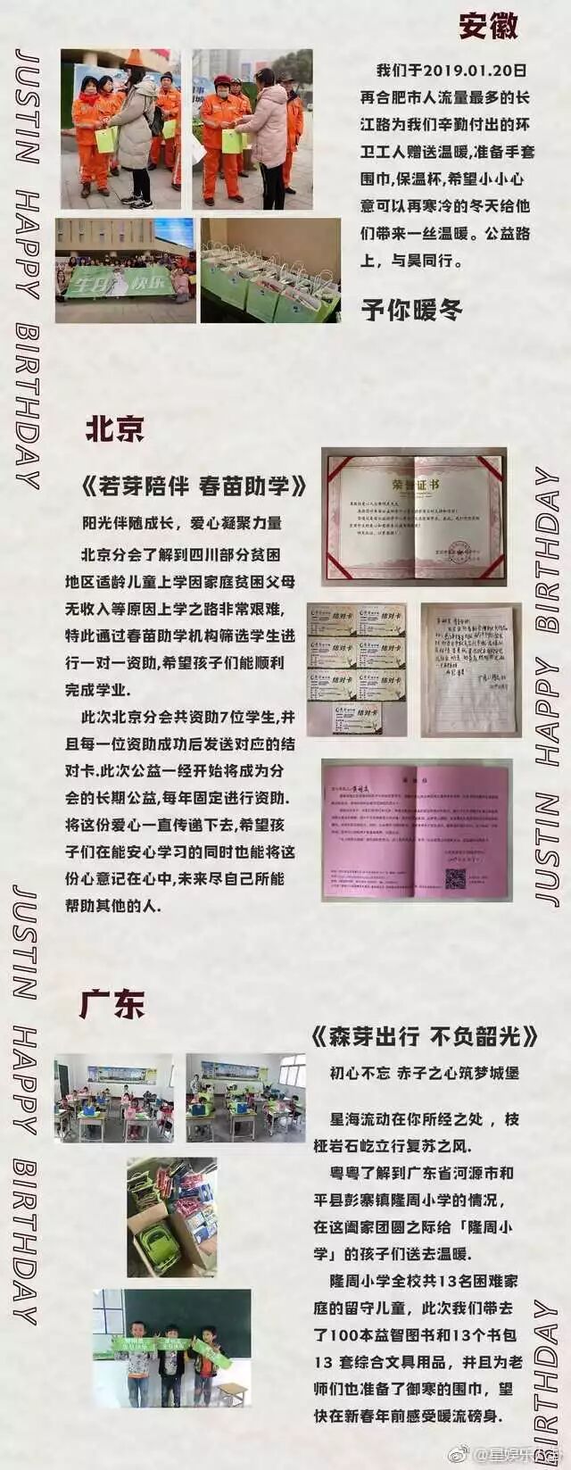 他说,感谢大家用我的名义给那么多人送去温暖,你们自己也要幸幸福福的哦。