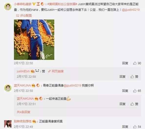 黄明昊传递给粉丝的是正能量,粉丝再把这些能量传递出去,进而影响更多的人。
