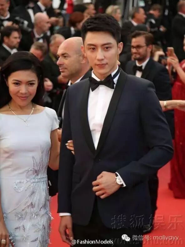 黄景瑜和苏芒也登上红地毯,黄景瑜身着Saint Laurent经典西装。