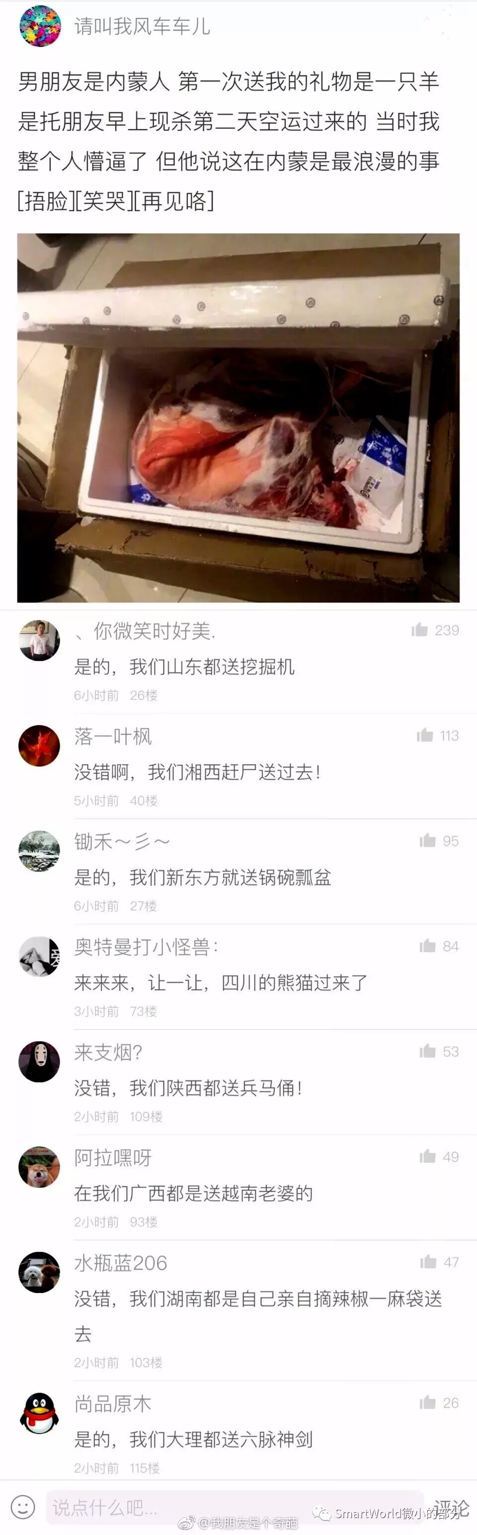 牙齿和我说,他说他吃不惯长春这边的饭菜,感觉东北人都在乱吃,汤汤水水的。
