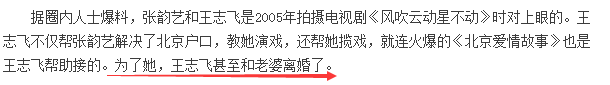 本来在戏里面王志飞就饰演一个为了张歆艺抛弃妻子的大少爷,但让人万万没想到的是,他们在私下也发生类似的情节..