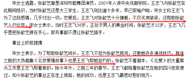 一来二往两人就互生情愫了,之后王志飞便为张歆艺买房装修,解决了北京户口;