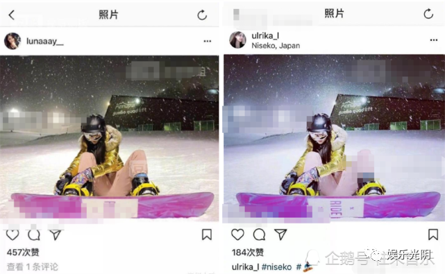 有网友发现,不只是做饭的图片跟其他人的重合,就连此前外出滑雪的照片,都跟其他网红的是一模一样的,就连文案都是相同的,基本上是属于一个文案多人通用的节奏,所以也引起了大家的猜测,难道是统一教学吗?