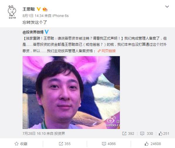 1. 普思资本确实放弃了管理人备案资格,但不是被动的,而是主动的,原因是钱都是王思聪自己的(或他爸爸?),没有公开募资,以后也不打算对外募资,所以不属于私募基金,也就不备案了。