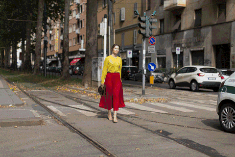用半身裙再来搭配乐福鞋,不光拉长腿部比例还可以将保暖与时髦进行到底。