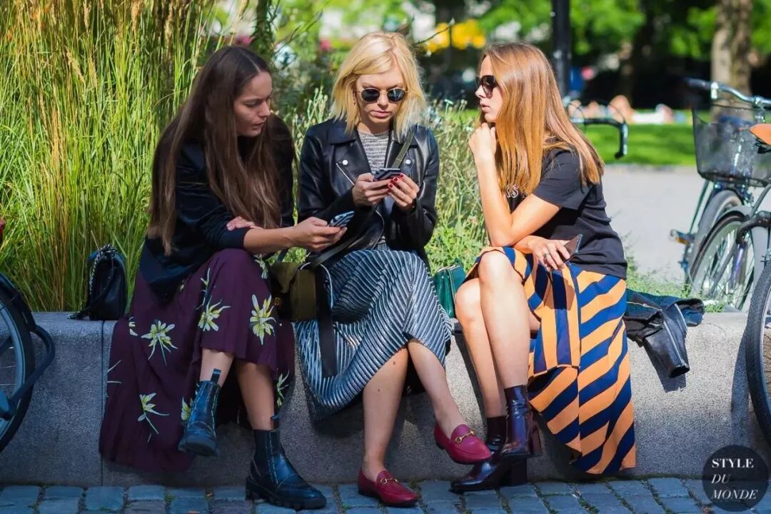 圆圆或者方方鞋头的乐福鞋更适合长裙,因为它不犀利,更圆滑也更可爱。