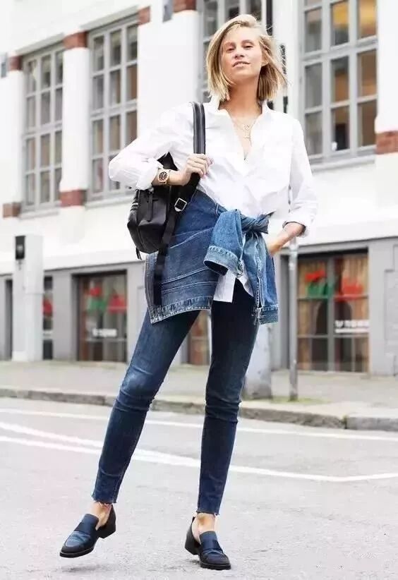 乐福鞋兼具休闲与时髦的双重风格,搭配牛仔裤露出纤细的脚踝,也让春日搭配灵动活泼起来。